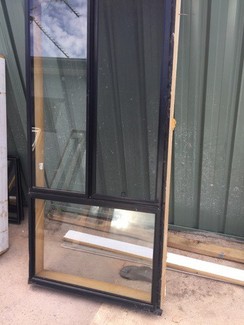 Up for sale is a black aluminium window in excellent condition measurements are 900 width by 1800.4 high comes with timber revels and fly screens price is $100 please call or text note can deliver for small fee